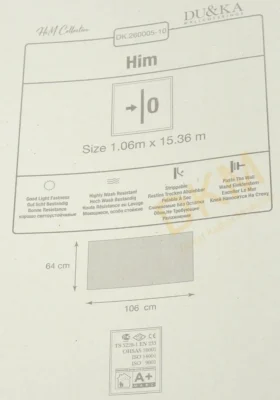 Yüzeyi Dokulu, yüzey malzemesi Vinil ve duvara yapışan taban malzemesi ise Kağıt olarak imal edilmiştir.