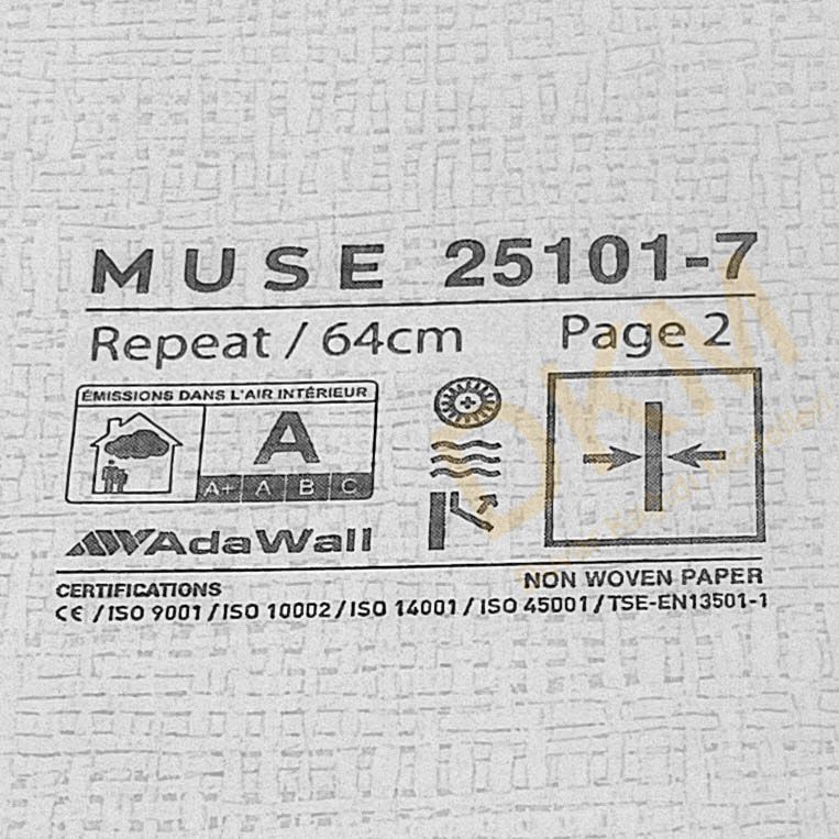 Muse duvar kağıdı Adawall duvar kağıdı üreticisinin koleksiyonudur. 63 model içerir. 16m²lik rulo halinde satılır.