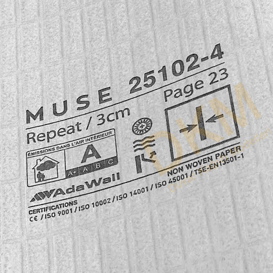 Muse duvar kağıdı Adawall duvar kağıdı üreticisinin koleksiyonudur. 63 model içerir. 16m²lik rulo halinde satılır.