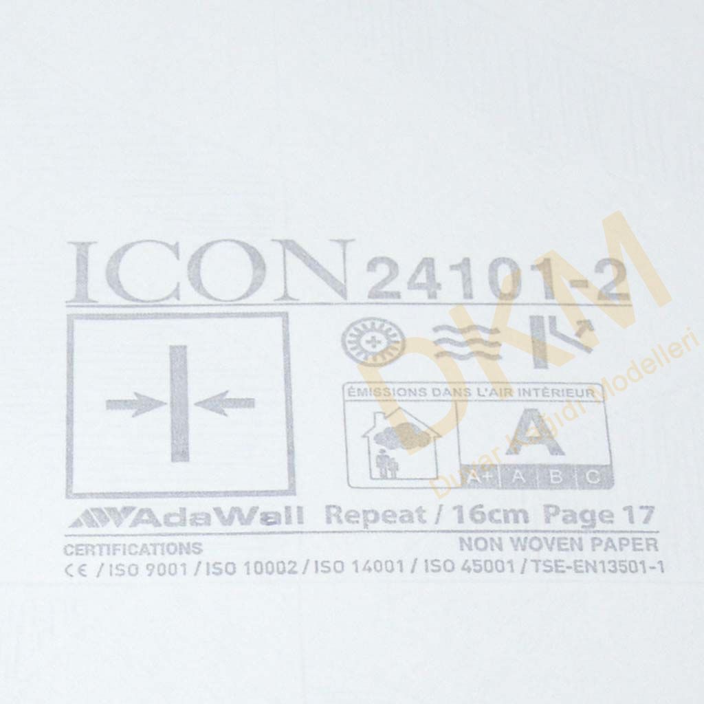 Yüzeyi Dokulu, yüzey malzemesi Vinil ve duvara yapışan taban malzemesi ise Non Woven olarak imal edilmiştir.