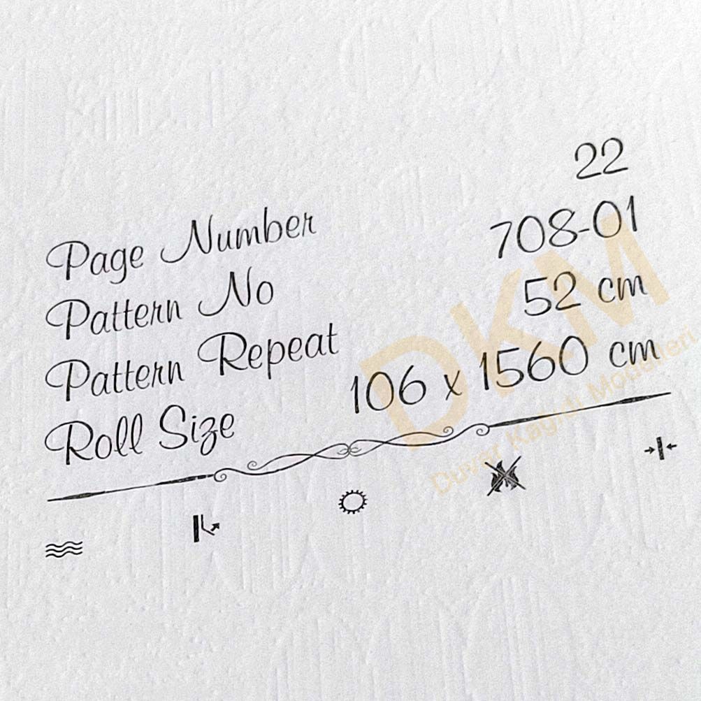 Yüzeyi Dokulu, yüzey malzemesi Vinil ve duvara yapışan taban malzemesi ise Kağıt olarak imal edilmiştir.