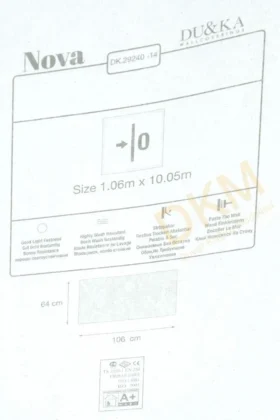 Yüzeyi Dokulu, yüzey malzemesi Vinil ve duvara yapışan taban malzemesi ise Kağıt olarak imal edilmiştir.
