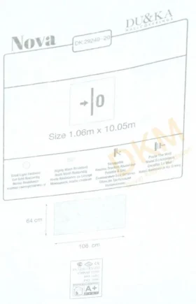 Yüzeyi Dokulu, yüzey malzemesi Vinil ve duvara yapışan taban malzemesi ise Kağıt olarak imal edilmiştir.