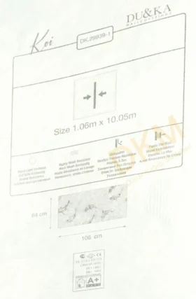 Yüzeyi Dokulu, yüzey malzemesi Vinil ve duvara yapışan taban malzemesi ise Kağıt olarak imal edilmiştir.