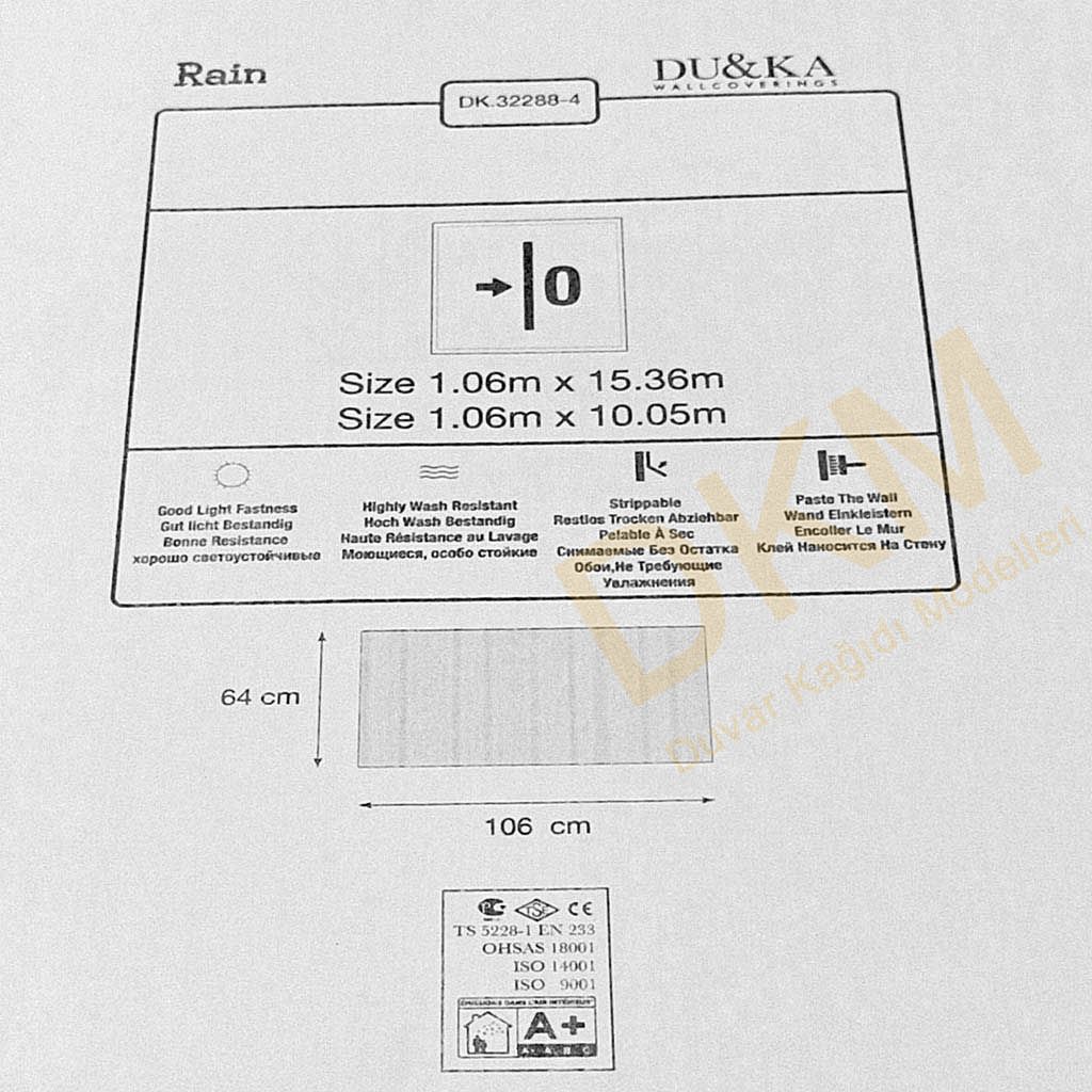 Rulo eni:106cm, rulo boyu: 1536cm’dir. Rulo 106×1536=16,28m²’dir.