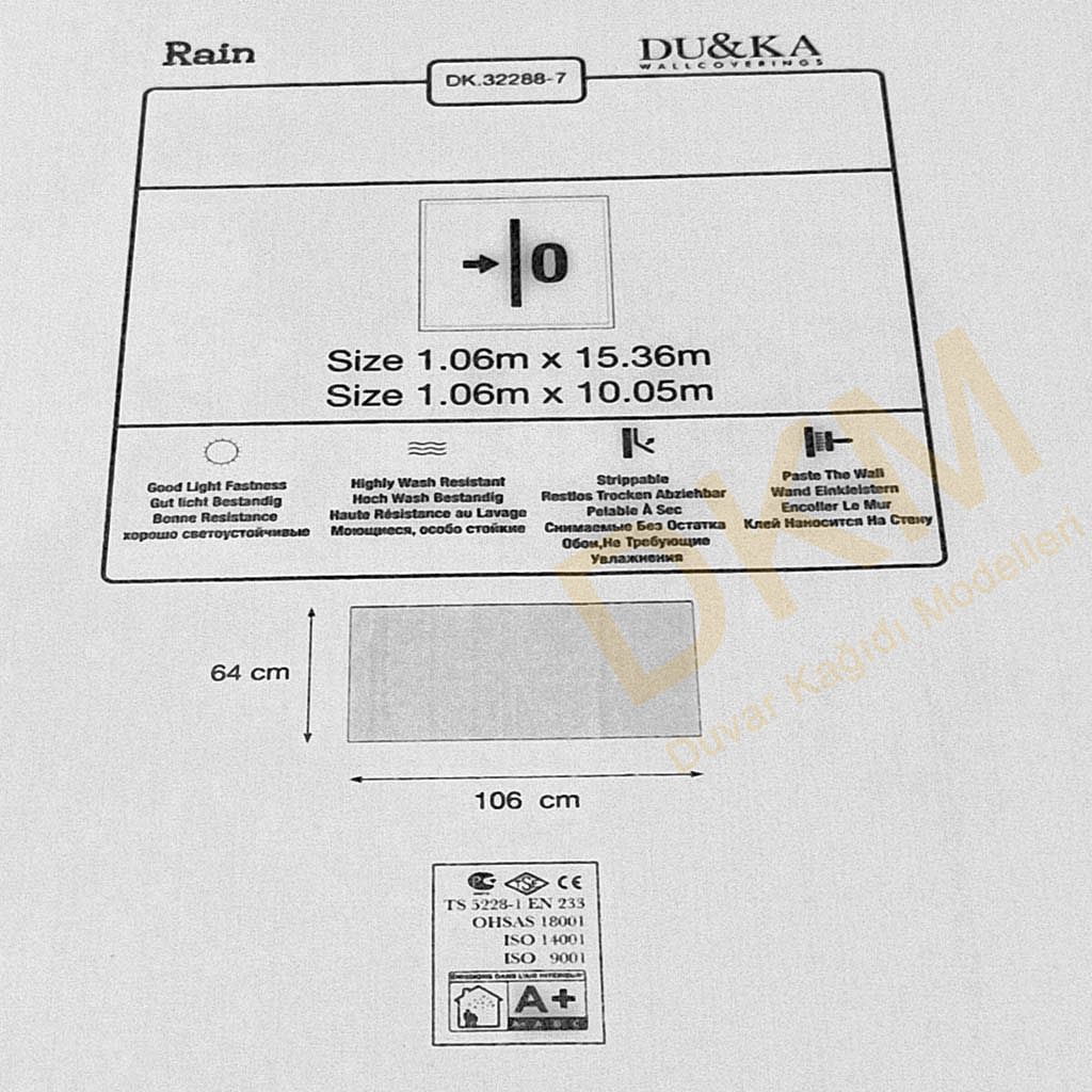 Rulo eni:106cm, rulo boyu: 1536cm’dir. Rulo 106×1536=16,28m²’dir.
