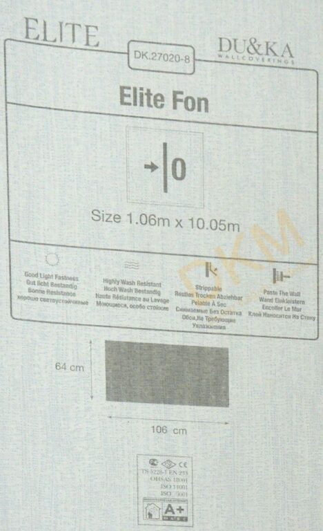 Yüzeyi Dokulu, yüzey malzemesi Vinil ve duvara yapışan taban malzemesi ise Kağıt olarak imal edilmiştir.