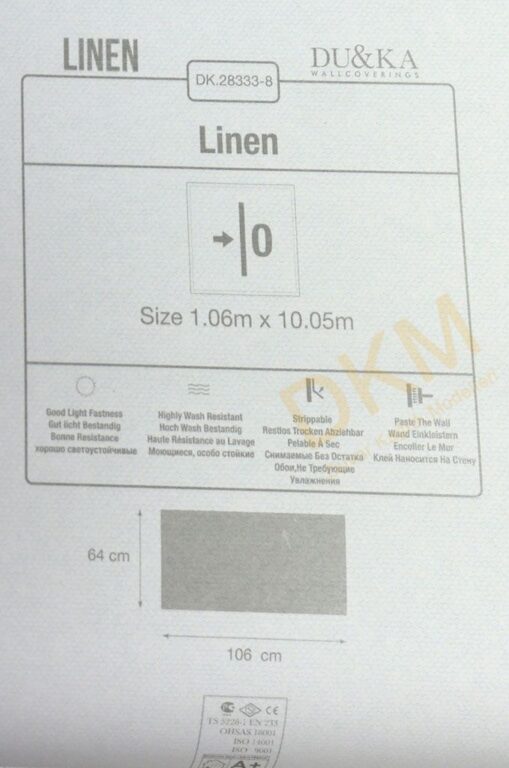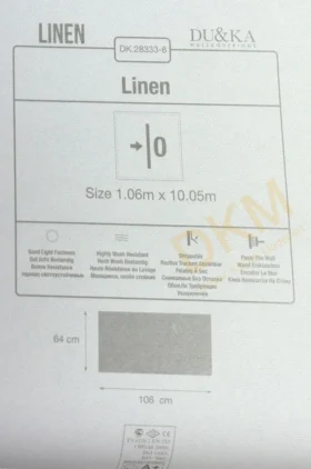 Yüzeyi Dokulu, yüzey malzemesi Vinil ve duvara yapışan taban malzemesi ise Kağıt olarak imal edilmiştir.