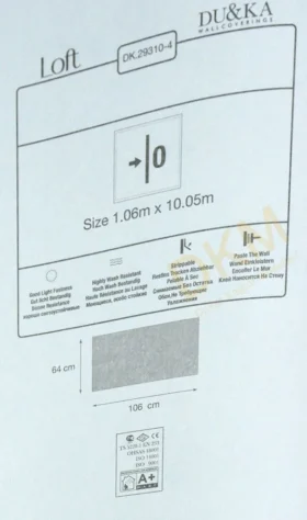 Yüzeyi Dokulu, yüzey malzemesi Vinil ve duvara yapışan taban malzemesi ise Kağıt olarak imal edilmiştir.