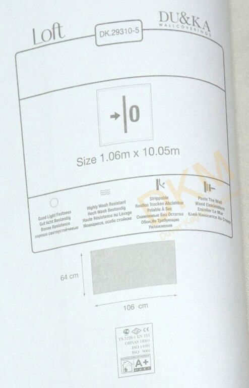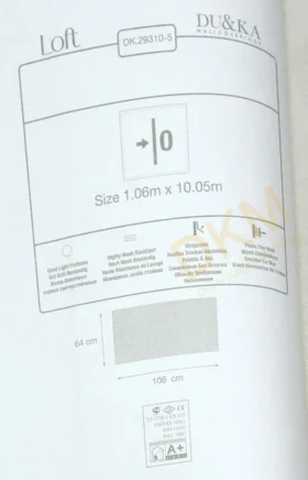 Yüzeyi Dokulu, yüzey malzemesi Vinil ve duvara yapışan taban malzemesi ise Kağıt olarak imal edilmiştir.