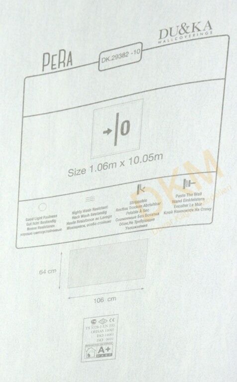 Yüzeyi Dokulu, yüzey malzemesi Vinil ve duvara yapışan taban malzemesi ise Kağıt olarak imal edilmiştir.