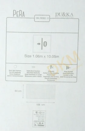 Yüzeyi Dokulu, yüzey malzemesi Vinil ve duvara yapışan taban malzemesi ise Kağıt olarak imal edilmiştir.