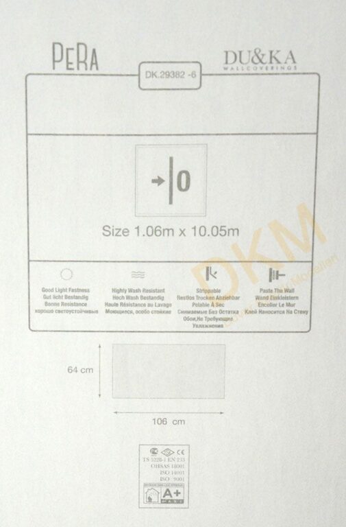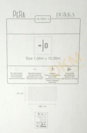 Yüzeyi Dokulu, yüzey malzemesi Vinil ve duvara yapışan taban malzemesi ise Kağıt olarak imal edilmiştir.