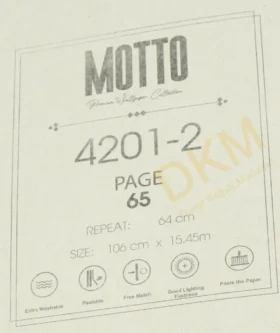 Motto Duvar Kağıdı GMZ Wall duvar kağıdı firmasının koleksiyonu arasında yer alır. Motto duvar kağıdı kataloğu içerik sayısı bildirilmemiştir. 16m²lik rulo halinde satılır.