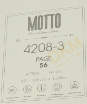 Motto Duvar Kağıdı GMZ Wall duvar kağıdı firmasının koleksiyonu arasında yer alır. Motto duvar kağıdı kataloğu içerik sayısı bildirilmemiştir. 16m²lik rulo halinde satılır.
