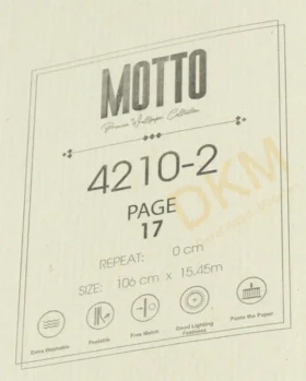 Motto Duvar Kağıdı GMZ Wall duvar kağıdı firmasının koleksiyonu arasında yer alır. Motto duvar kağıdı kataloğu içerik sayısı bildirilmemiştir. 16m²lik rulo halinde satılır.