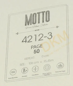 Motto Duvar Kağıdı GMZ Wall duvar kağıdı firmasının koleksiyonu arasında yer alır. Motto duvar kağıdı kataloğu içerik sayısı bildirilmemiştir. 16m²lik rulo halinde satılır.