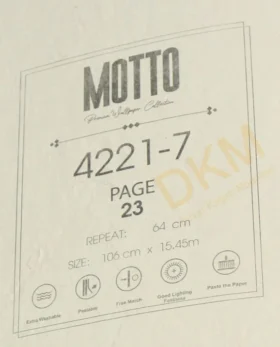 Motto Duvar Kağıdı GMZ Wall duvar kağıdı firmasının koleksiyonu arasında yer alır. Motto duvar kağıdı kataloğu içerik sayısı bildirilmemiştir. 16m²lik rulo halinde satılır.