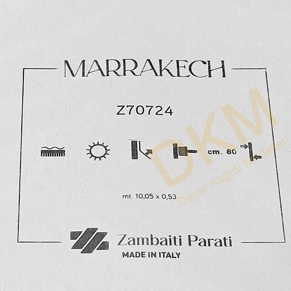 İthal Marrrakech duvar kağıdı, Zambaiti Parati markasına ait genişlik 53cm uzunluk 10m olan 5m²lik duvar kağıtlarındandır.