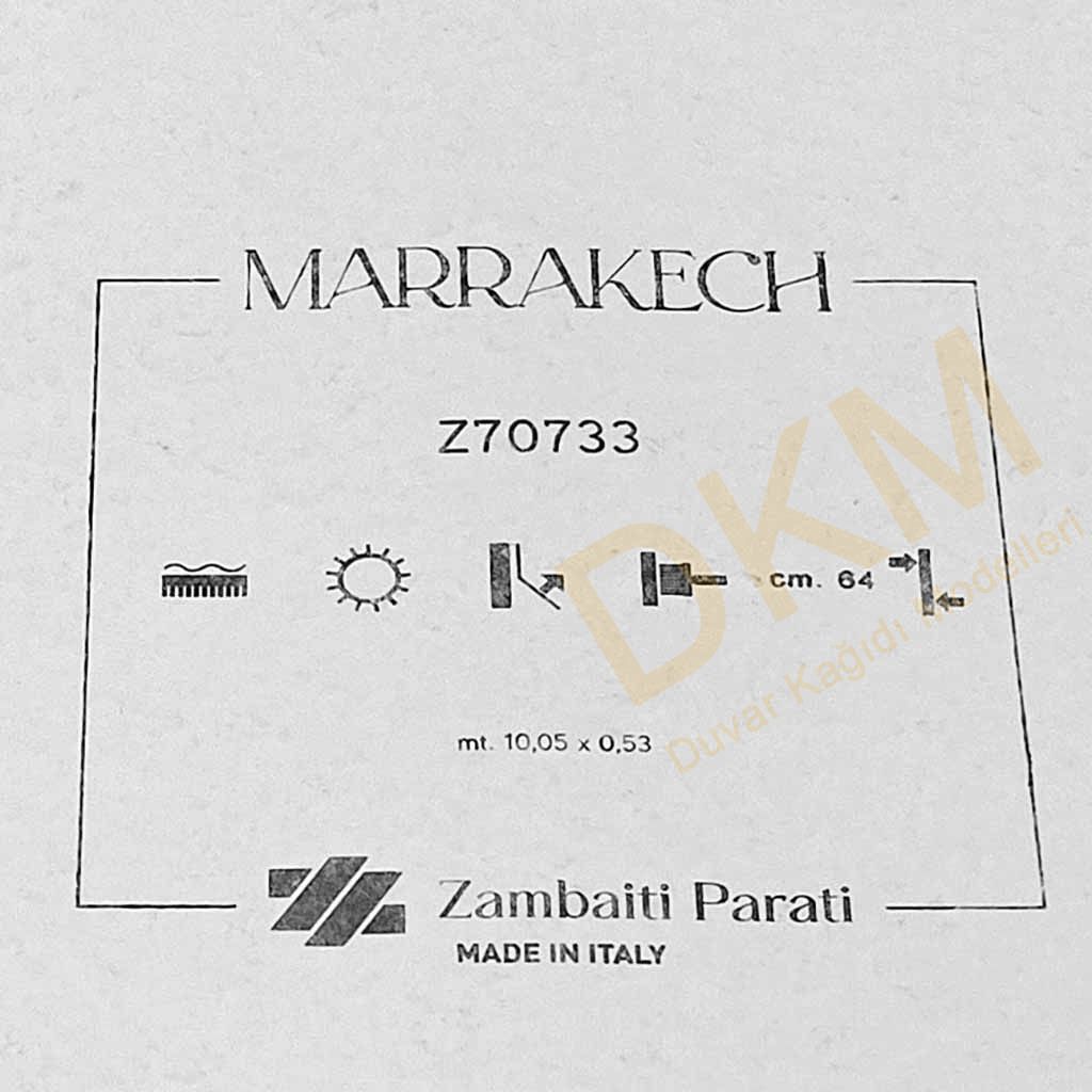 İthal Marrrakech duvar kağıdı, Zambaiti Parati markasına ait genişlik 53cm uzunluk 10m olan 5m²lik duvar kağıtlarındandır.