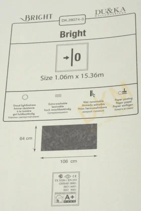 Yüzeyi Dokulu, yüzey malzemesi Vinil ve duvara yapışan taban malzemesi ise Kağıt olarak imal edilmiştir.