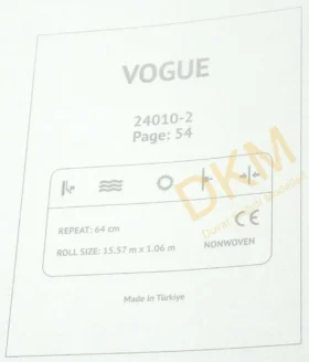Vogue duvar kağıdı Yasham Duvar Kağıtları üreticisinin Türkiye’deki markası Seela duvar kağıdı markası altında üretilmiştir. Vogue duvar kağıdı 10 ve 16m²lik rulolar halinde satılır.