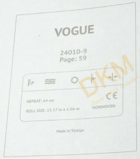 Vogue duvar kağıdı Yasham Duvar Kağıtları üreticisinin Türkiye’deki markası Seela duvar kağıdı markası altında üretilmiştir. Vogue duvar kağıdı 10 ve 16m²lik rulolar halinde satılır.
