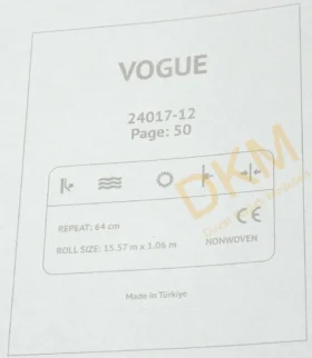 Vogue duvar kağıdı Yasham Duvar Kağıtları üreticisinin Türkiye’deki markası Seela duvar kağıdı markası altında üretilmiştir. Vogue duvar kağıdı 10 ve 16m²lik rulolar halinde satılır.