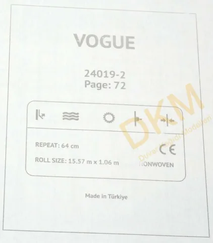 Vogue duvar kağıdı Yasham Duvar Kağıtları üreticisinin Türkiye’deki markası Seela duvar kağıdı markası altında üretilmiştir. Vogue duvar kağıdı 10 ve 16m²lik rulolar halinde satılır.