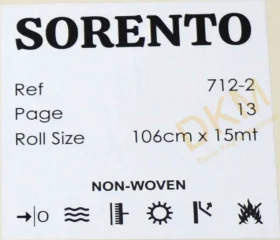 Sorento 712-2 Düz kumaş Duvar Kağıdı 16m² Düz kumaş desene sahiptir. Rulo ölçüsü 16m²dir. SpecialSorento712-2, Sorento kataloğunda yer alır.