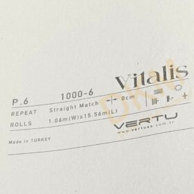 Vitalis duvar kağıdı kataloğu 83 model içerir. Her zaman kullanılabilecek düz desenlerin yer aldığı katalog 16m²lik rulo halinde satılır.