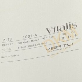 Vitalis duvar kağıdı kataloğu 83 model içerir. Her zaman kullanılabilecek düz desenlerin yer aldığı katalog 16m²lik rulo halinde satılır.
