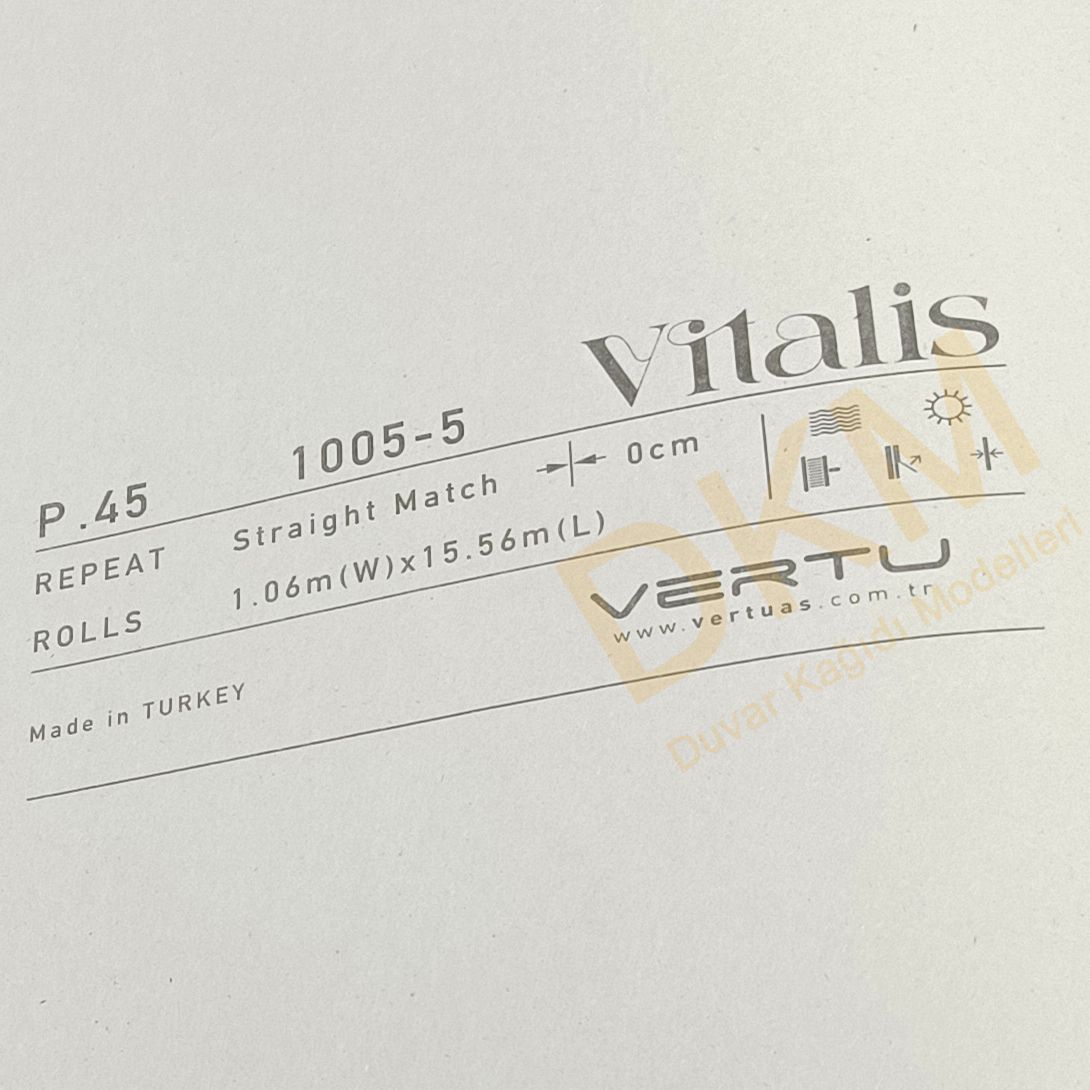 Vitalis duvar kağıdı kataloğu 83 model içerir. Her zaman kullanılabilecek düz desenlerin yer aldığı katalog 16m²lik rulo halinde satılır.