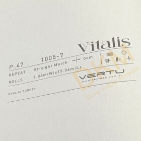 Vitalis duvar kağıdı kataloğu 83 model içerir. Her zaman kullanılabilecek düz desenlerin yer aldığı katalog 16m²lik rulo halinde satılır.