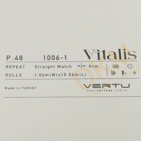 Vitalis duvar kağıdı kataloğu 83 model içerir. Her zaman kullanılabilecek düz desenlerin yer aldığı katalog 16m²lik rulo halinde satılır.