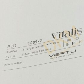 Vitalis duvar kağıdı kataloğu 83 model içerir. Her zaman kullanılabilecek düz desenlerin yer aldığı katalog 16m²lik rulo halinde satılır.