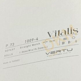 Vitalis duvar kağıdı kataloğu 83 model içerir. Her zaman kullanılabilecek düz desenlerin yer aldığı katalog 16m²lik rulo halinde satılır.